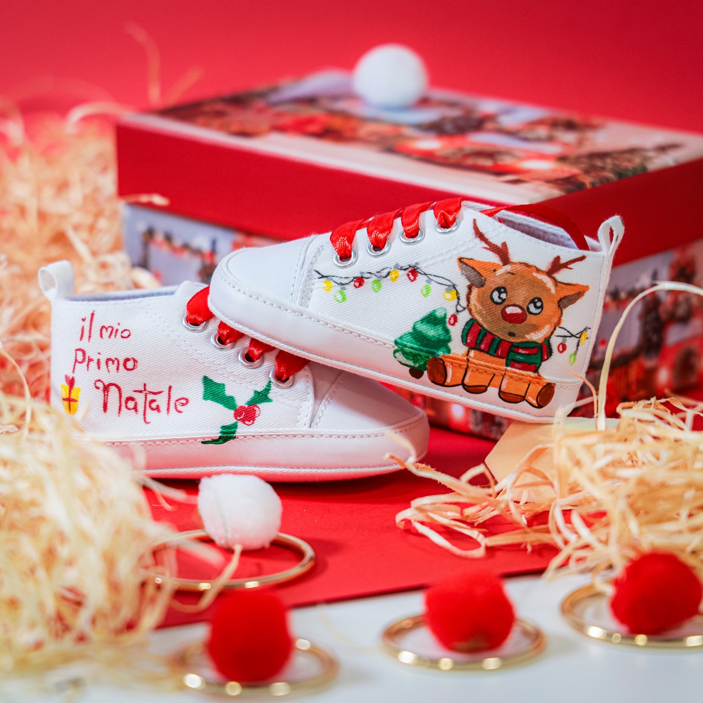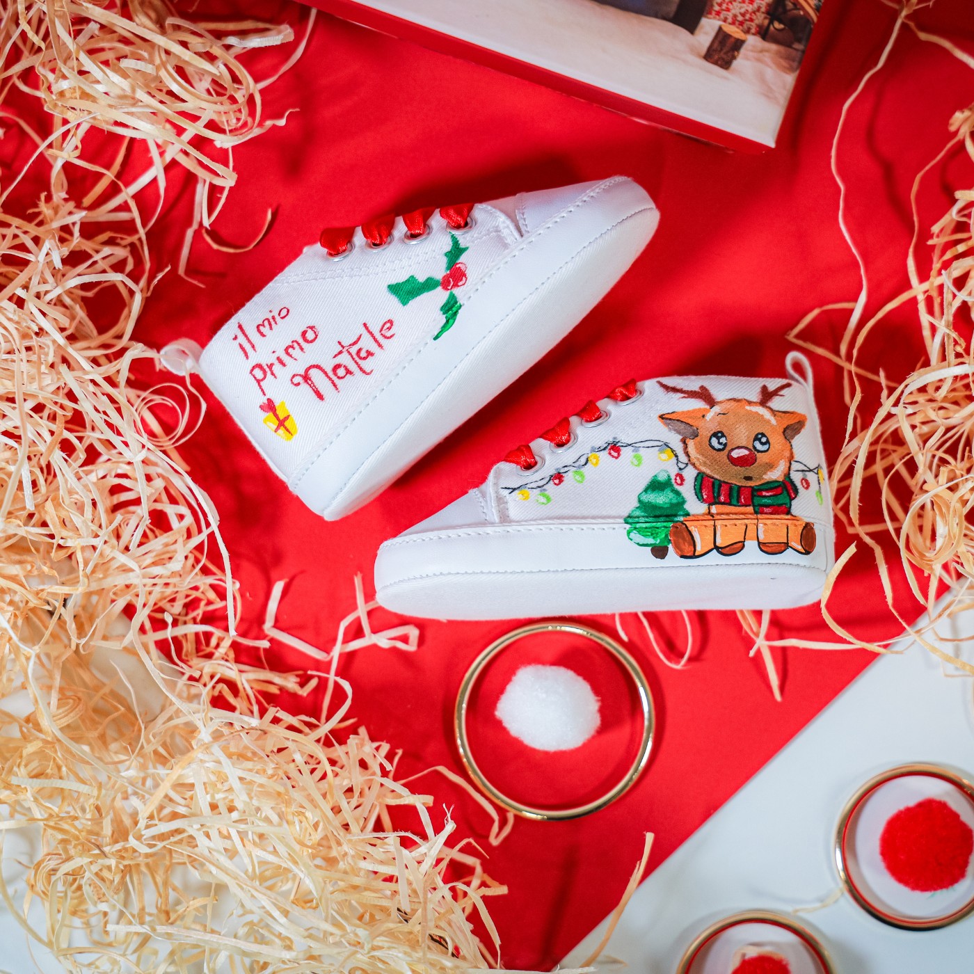 Scarpina baby dipinta a mano per augura un buon e dolce natale al neonato.