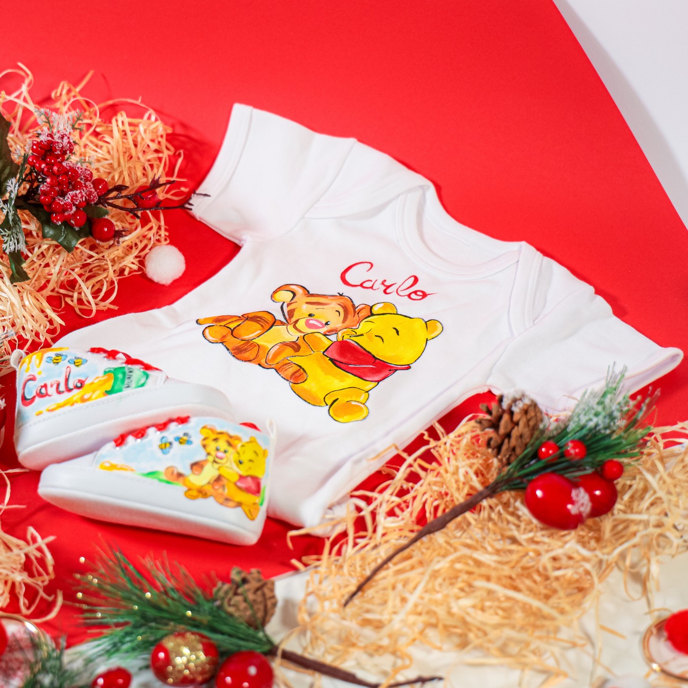Set baby unisex dipinto a mano con tanto amore e passione.Il disegno è ispirato all’amatissimo Winnie the Pooh <3.